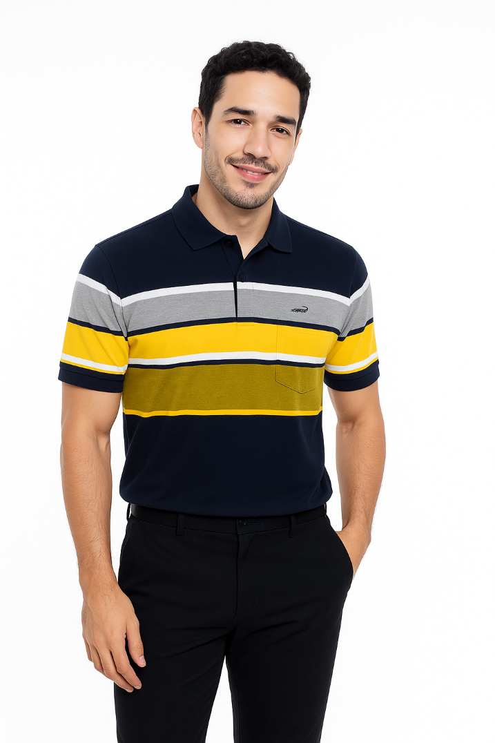 Kenalkan produk terbaru dari Crocodile — polo shirt penuh warna yang menghadirkan energi muda dan tampilan yang segar ke dalam gaya Anda. Dengan kombinasi garis-garis warna bumi dan laut yang dinamis, desain ini siap membuat Anda tampil lebih percaya diri dan mencuri perhatian.