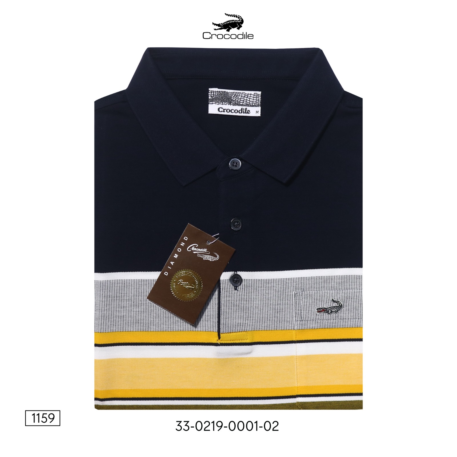 – Bordir logo Crocodile Diamond pada saku dada